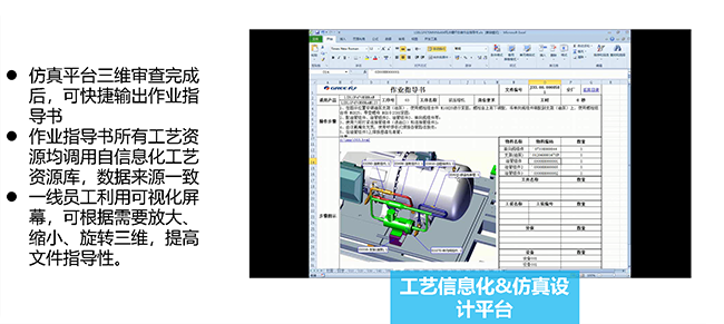 1) 总装工艺:基于DELMIA 3D数字化工艺平台,实现基于3D的数字化总装工艺规划、人机操作的仿真验证、工时分析、产线平衡等;