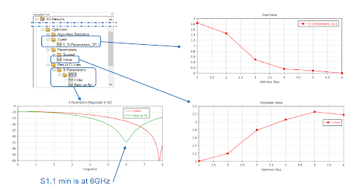 使用 CST 中的内置优化器实现了 6GHz 的 S1,1 谐振优化